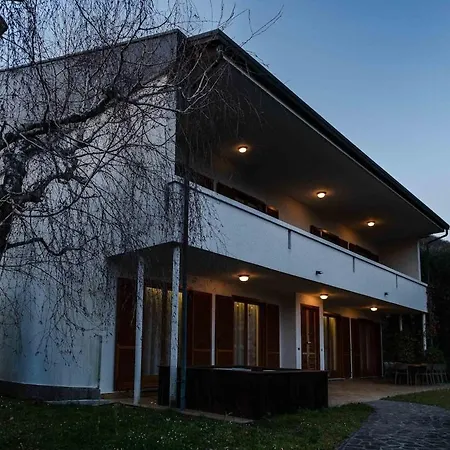 Die Villa in Galbiate und eine Terrasse bieten einen Blick auf den Garten. Diese Unterkunft verfügt über ein Badezimmer mit einer Badewanne und einem Whirlpool.